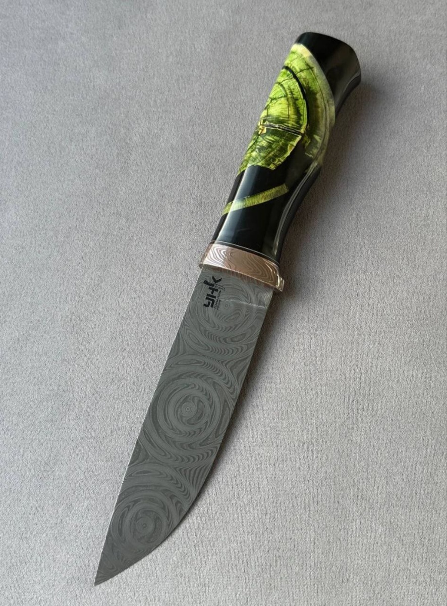 🦬Для тех, кто ищет не просто инструмент — представляем необычную модель - Зубр из дамаска: ✔ Клинок из многослойного дамаска — Узор «роза» — вихревая текстура — Твердость 62 HRC — рубит, режет и не тупит ✔ Рукоять из бивня мамонта в акриле — Полировка «стекло» — ощущение ледяного древнего артефакта ✔ Гарда из мокуме-гане — Узор «древесные кольца» — символ мощи и долголетия Хотите такого «Зубра» в коллекцию?😉 Пишите в комментарии, оформим и отправим незамедлительно! #УНК_Зубр #Дамаск #Мамонт #Эксклюзив