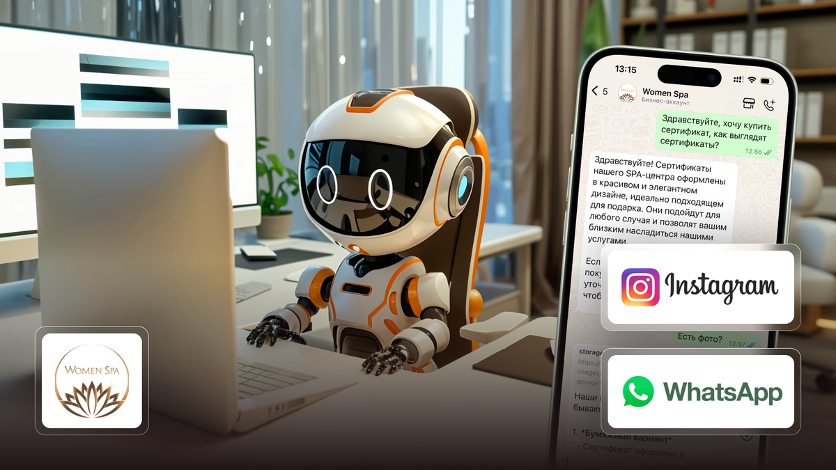 Представьте: 50 звонков и чатов ежедневно, каждый разговор занимает по 10-15 минут, администраторыторопятся, лишь бы записать клиента. При этом в нерабочее время десятки запросов остаются необработанными. Примерно такая картина была у нашего клиента. Women SPA — это не просто спа-центр, а настоящий храм красоты для женщин всех возрастов. Более 90 видов процедур: от расслабляющих СПА-программ до омолаживающих уходов за лицом, массажи, сауна, хаммам. Клиентская база — от юных девушек до элегантных дам в возрасте. Популярность спа-центра обернулась неожиданной проблемой. Ежедневно поступало порядка 50 обращений, и каждое требовало персонального внимания администратора: В пиковые часы администраторы просто не успевали качественно обслуживать всех желающих. Результат предсказуем — потерянные клиенты и упущенные продажи. Задача была амбициозной: сохранить персональный подход к каждому клиенту, но при этом снять рутинную нагрузку с администраторов. Нужно было создать систему, которая работа
