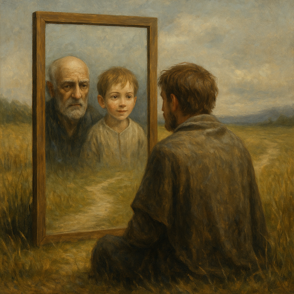 Однажды Путник, уставший от долгих дорог, забрёл в странное место, где не было ни домов, ни людей — только одно-единственное Зеркало посреди поля. Он подошёл к нему и увидел в нём... не себя, а незнакомого старика с потухшим взглядом. — Что за шутка? — пробормотал он. — Это же не я. Зеркало не ответило. Только слегка дрогнуло, как будто вздохнуло. Путник запаниковал и стал кричать, возмущаться, размахивать руками — но отражение оставалось прежним. Старик всё так же смотрел на него с усталостью, будто ждал, когда тот уйдёт. Разозлившись, Путник бросил в зеркало камень. Оно треснуло — но не разбилось. И вдруг из трещины на отражении проявился ребёнок, который смотрел на него с интересом, искренне, будто впервые увидел мир. Путник опешил. — Кто ты? Ребёнок в зеркале улыбнулся. — Я — тот, кем ты был до того, как начал думать, что всё знаешь. А старик — это тот, кем ты становишься, когда забываешь, что всё ещё ищешь. Путник молча сел на землю. Он впервые не знал, что ответить. А
