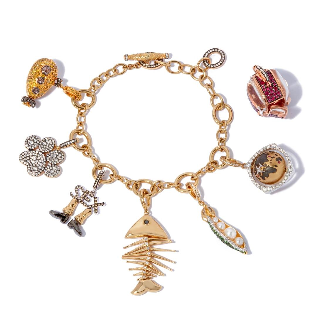 Вместо того, чтобы выбирать готовые подвески, клиентам предлагается тесно сотрудничать с Annoushka, чтобы создать свои собственные семь абсолютно уникальных подвесок из 18-каратного золота, которые выжимают суть их личности, любви и причуд в мини-драгоценности. Подвески крепятся либо к браслету, либо к ожерелью с помощью мерцающей бриллиантовой кипы, создавая драгоценную историю жизни.
