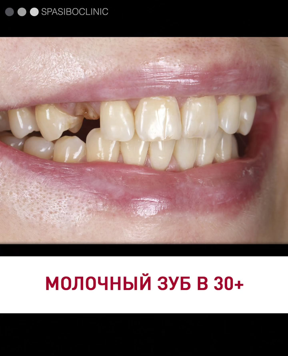 Молочный клык у пациентки продержался 30 лет и только потом сломался. ⠀