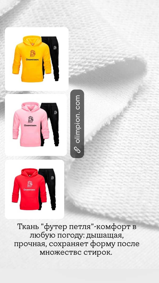 Ваш друг в обычной майке дрожит на утренней пробежке, а вы в костюме из футера петли — бодры и фотогеничны (потому что не скрутились в позу эмбриона от холода). Футер петля — главный тканевый герой 2025 года, особенно когда лето решило пойти в отрыв. А Олимпион делает из него костюмы, которые переживут всё: от ливней до ваших попыток начать ЗОЖ. P.S. Если после этой статьи вы всё ещё в старом растянутом худи… Мы не знаем, как вам помочь. Разве что скидкой 10% по промокоду «ХОЧУФУТЕР» 😉.