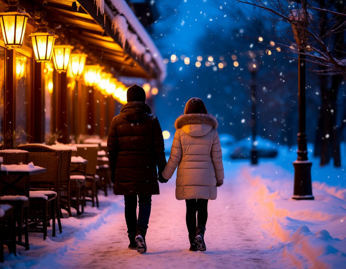 Мы выходим из ресторана, и я сразу же глубоко вдыхаю морозный воздух. Снег тихо скрипит под ногами, а золотистые огни фонарей выглядят теплыми, несмотря на холод вокруг. Алиса идет рядом, пряча руки в карманах пуховика, и бросает взгляд на темно-синее небо, усыпанное мелкими звездами.