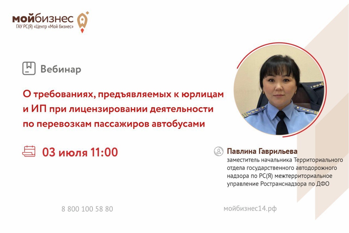 Центр «Мой бизнес» приглашает принять участие в вебинаре «О требованиях, предъявляемых к юрлицам и ИП при лицензировании деятельности по перевозкам пассажиров автобусами».