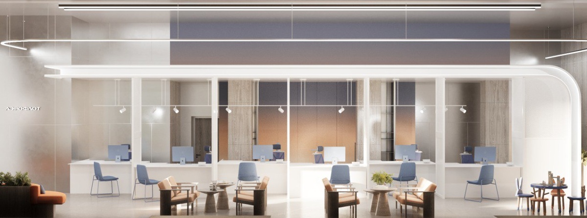 Цель – создать не просто кассы, а зону приветствия, настраивающую на приятное предвкушение полета.