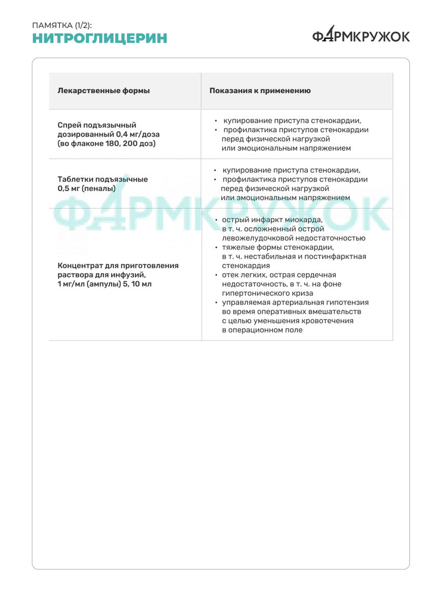 #фармгайд В середине XIX века итальянский ученый Асканьо Собреро обратил внимание на выраженную головную боль, которая развивается при попадании на язык микроскопических доз нитроглицерина. Тогда объяснений этому факту не было, однако сегодня медицинская наука способна дать ответ на вопрос, почему так происходит. Кроме того, при проведении исследований была выявлена способность нитроглицерина расслаблять гладкую мускулатуру кровеносных сосудов сердца и внутренних органов, что послужило поводом для его активного применения в кардиологии. 💊Коллеги, подготовили для вас фармгайд, в котором рассказали о лекарственных формах нитроглицерина и основных правилах его приема.