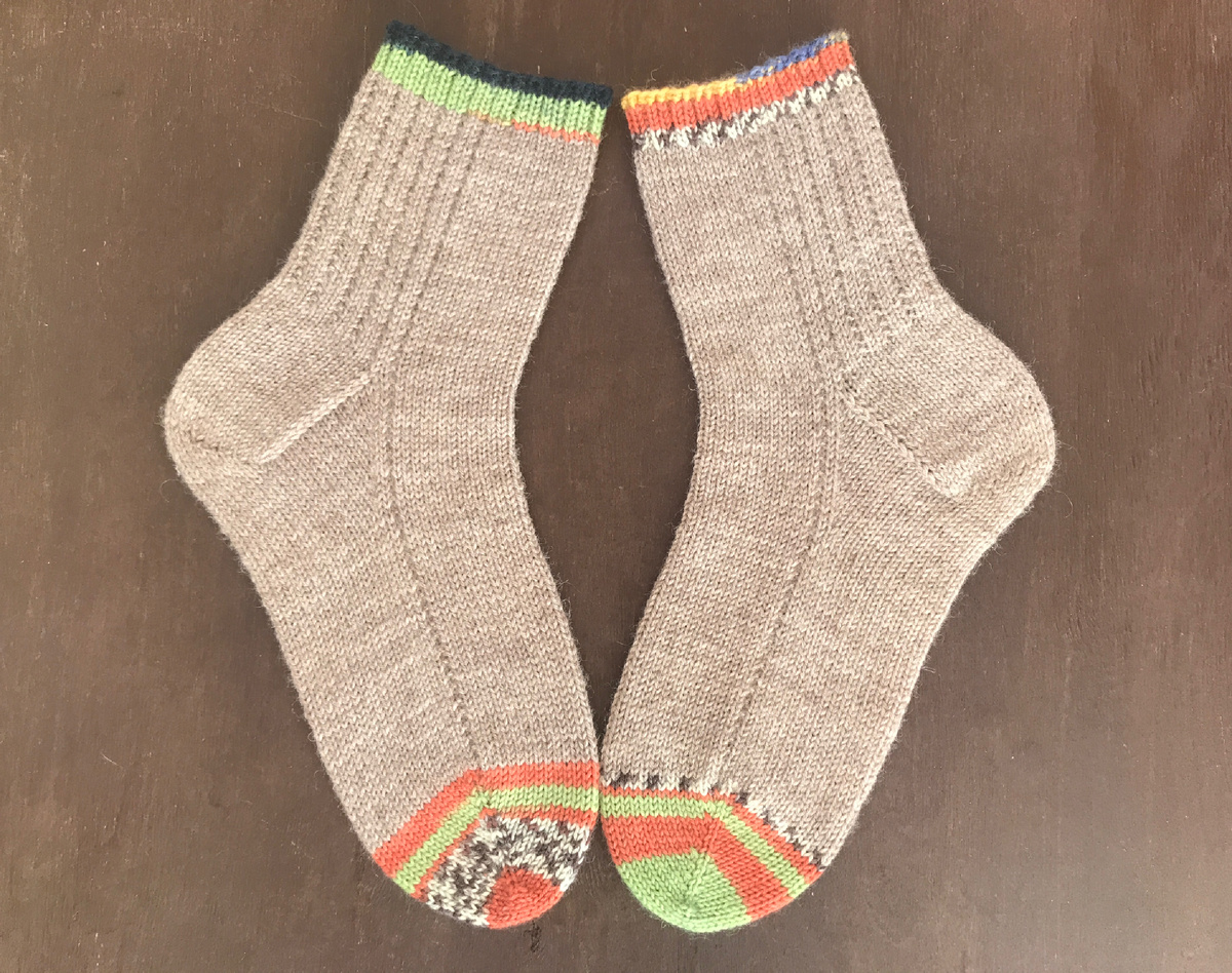 Готова четвёртая пара носков из коллекции «Пестрыши»! 😍 Как же они мне нравятся! Собственно, я так про каждую пару говорю. Но это же здОрово: вязать с удовольствием и получать результат, который окрыляет. 😊 Если посчитать время, уделённое непосредственно вязанию, то быстро я их сварганила (культурно же такое слово применить?..😊). И неудивительно, ведь это носки на размер 36-37 с длиной стопы 24см. Вес 56г. Связаны из чудесной носочной пряжи Ализе Супервош Комфорт. 🤩 Основной цвет номер 207. Дополнительный - 2701. Из такой тонкой нитки (100г-420м) носки я вяжу спицами номер два с половиной. Использую деревянные спицы от КнитПро из серии Симфония длиной 80см. Из-за своей миниатюрности спицы требуют аккуратного обращения, но вполне подходят для вязания способом мэджик луп сразу двух носков. 🤗 Как вязала. Набрала на каждую спицу для каждого носка по 8 петель. Мысок связала, сделав прибавки через ряд 11раз. В последнем ряду мыска поменяла нить на основной цвет. Получила на каждый носо