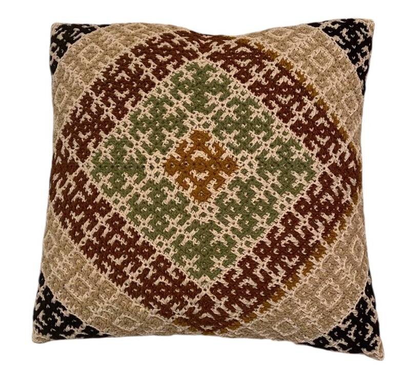Светлана из чата «Нескучные квадраты» связала мотив из центра и затем сложила его конвертом — получилась наволочка для подушки🔥