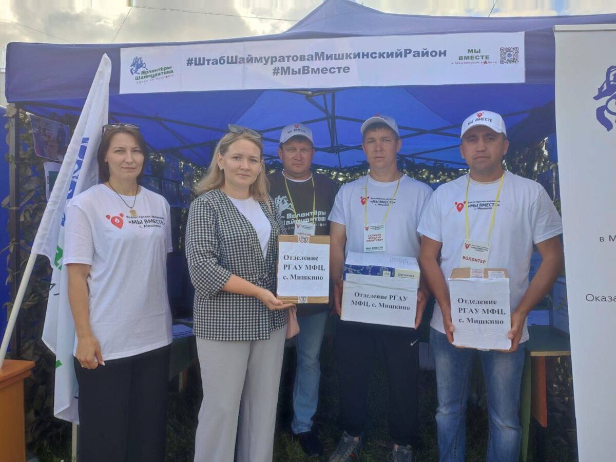 Отделение МФЦ с. Мишкино приняло участие в формировании гуманитарной помощи для наших бойцов, участвующих в СВО на Фестивале “Ер кото - Сила земли”.