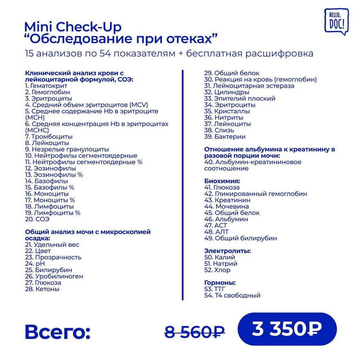 3️⃣ Найдите в приложении Mini Check-Up «Обследование при отеках» и оплатите его по специальной цене.