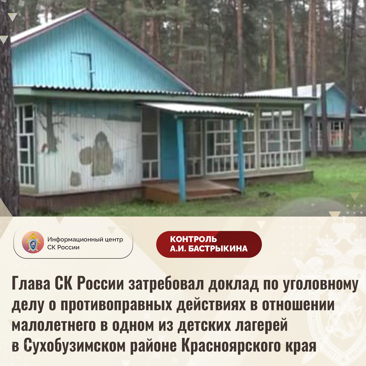 Глава СК России затребовал доклад по уголовному делу о противоправных действиях в отношении малолетнего в одном из детских лагерей в Сухобузимском районе Красноярского края В телеграм-канале сообщается, что 27 июня текущего года в одном из детских оздоровительных лагерей Сухобузимского района Красноярского края трое подростков избили десятилетнего мальчика, а также совершили в отношении него иные противоправные действия. В ГСУ СК России по Красноярскому краю и Республике Хакасии по данному факту возбуждено уголовное дело. Председатель Следственного комитета Российской Федерации Александр Иванович Бастрыкин затребовал у руководителя ГСУ СК России по Красноярскому краю и Республике Хакасии Алексея Леонидовича Еремина доклад о предварительных и окончательных результатах расследования уголовного дела. Исполнение поручения поставлено на контроль в центральном аппарате ведомства. #СледственныйКомитет #СКРоссии #СКР #ИЦСКР #Информационныйцентр #АлександрБастрыкин #ПредседательСКР #КонтрольПр