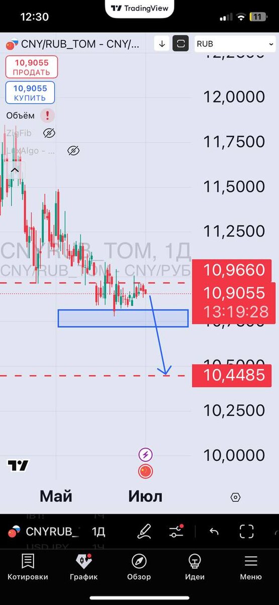 Юань рубль пилит в зоне ложного пробоя. А это значит что становится вероятным уход на 10.45.