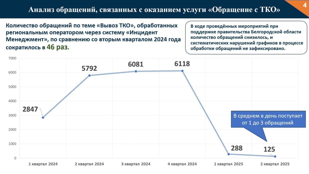 Количество жалоб белгородцев на вывоз мусора уменьшилось в 46 раз