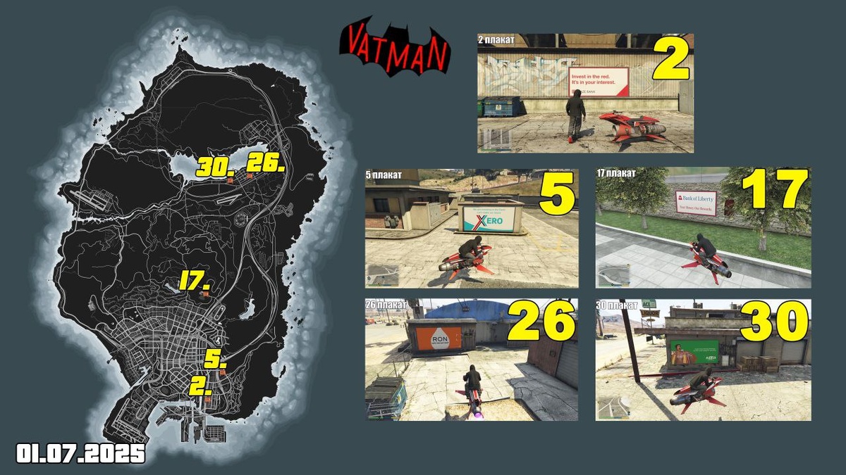 Расположение плакатов в GTA Online на сегодня (1 июля)☀