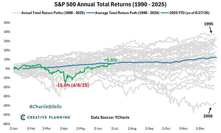 И сегодня, 27 июня — +5.6% YTD. Выше средней траектории за последние 35 лет.