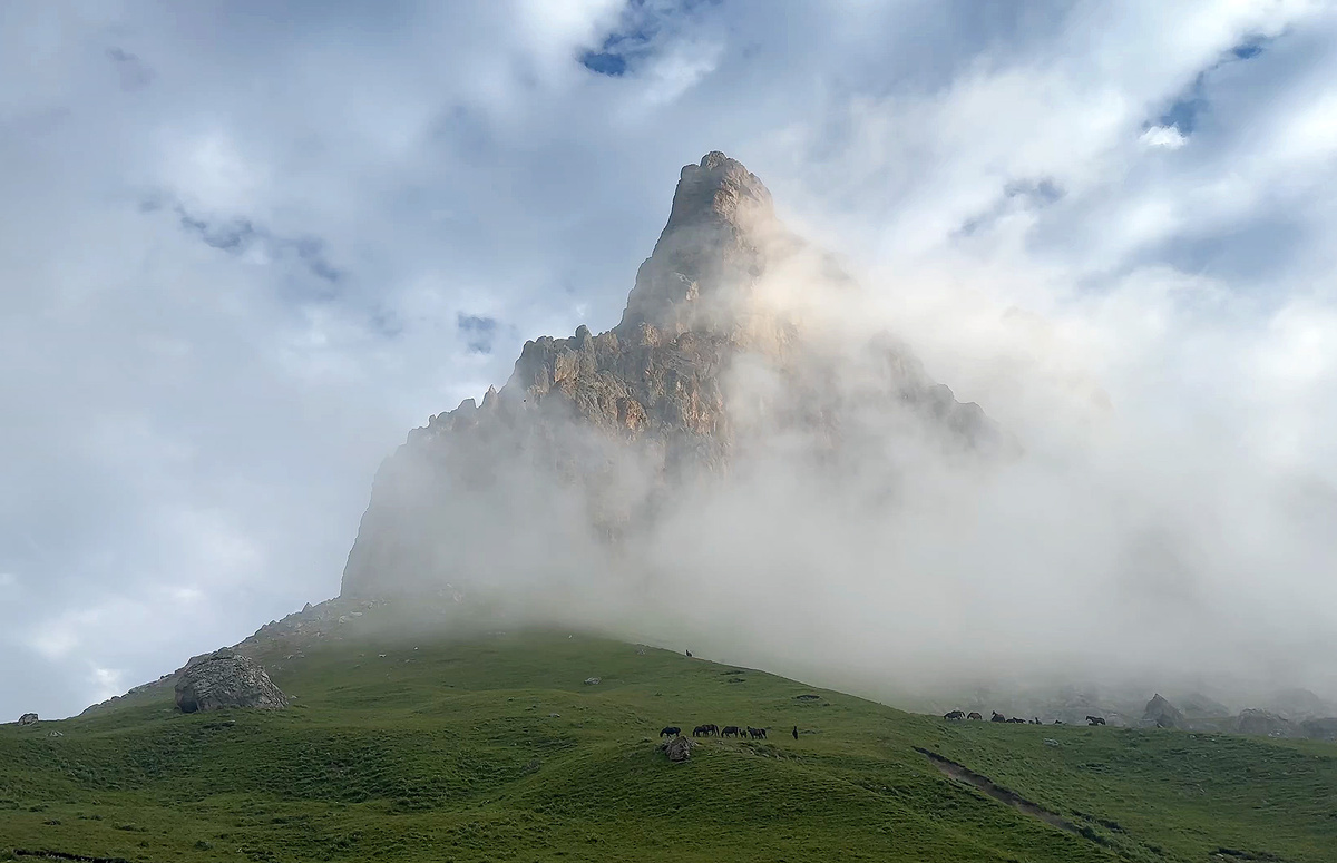 Погода здесь очень изменчива и даже летом может быстро опуститься близко к 0. Под перевалом находятся несколько кошар, можно разместиться на ночёвку рядом, главное быть острожным, поблизости могут быть собаки. Помимо привычного скота, пасущегося на высокогорье, впервые увидел яков. Пастухи сказали, что лучше обходить их стороной.