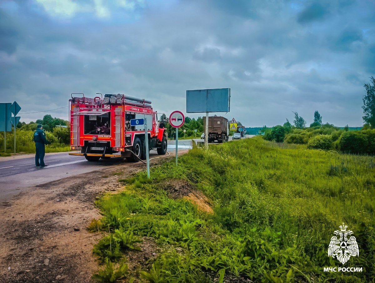 ❗В десятом часу утра на въезде в поселок Холм-Жирковский столкнулись грузовой и легковой автомобили. В результате аварии у грузового автомобиля сорвался с крепления гидравлический масляный бак.