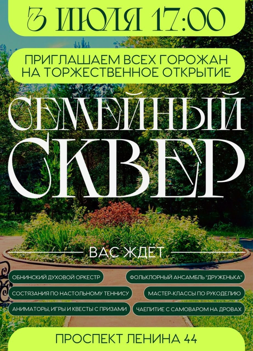 ✨Приглашаются жители города на открытие Семейного сквера 📅Открытие состоится 3 июля в 17:00