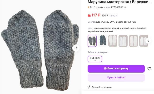 Заказала попробовать Варежки зимние из натуральной шерсти, сейчас по скидки приятной. Получила их и они реально классные. Делюсь находкой ВБ 277949358
