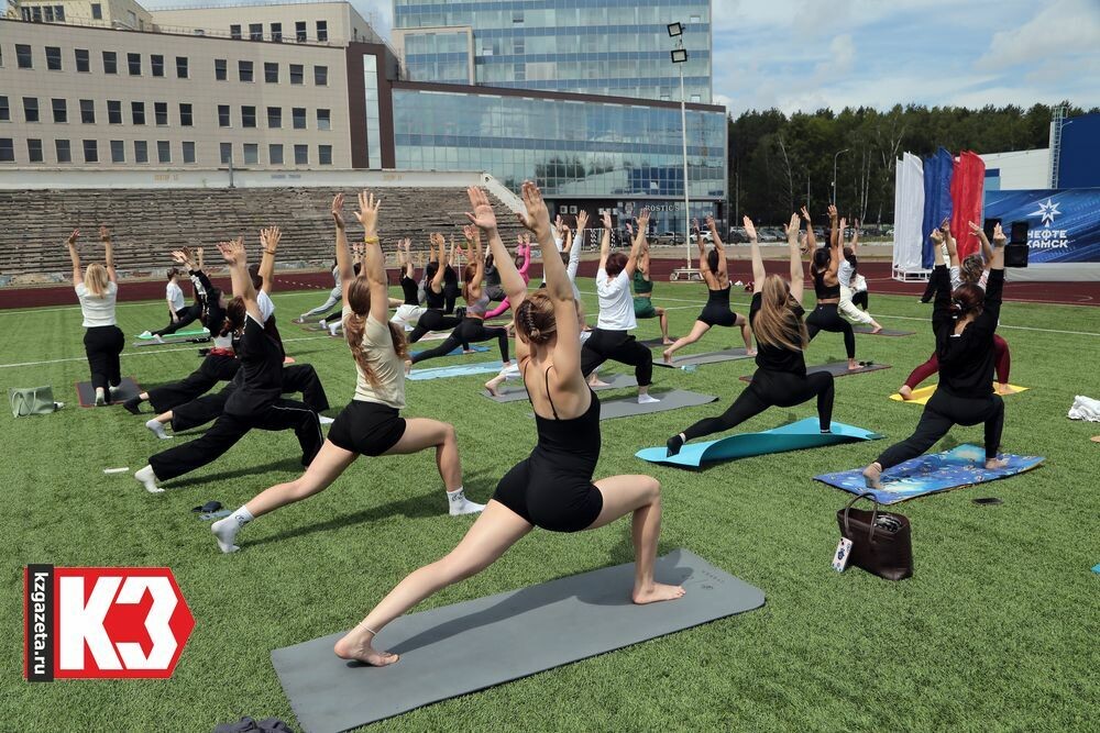 В День молодёжи на стадионе «Торпедо» состоялась йога на открытом воздухе. На зелёной травке девушки расстелили свои коврики и сели в позу лотоса в ожидании начала практики. Оказывается, йогой можно заниматься где угодно. Считается, чистый воздух и звуки природы, отсутствие стен и каких бы то ни было ограничений помогают почувствовать себя частью Вселенной. Перед практикой несколько минут разогрева и суставной разминки.