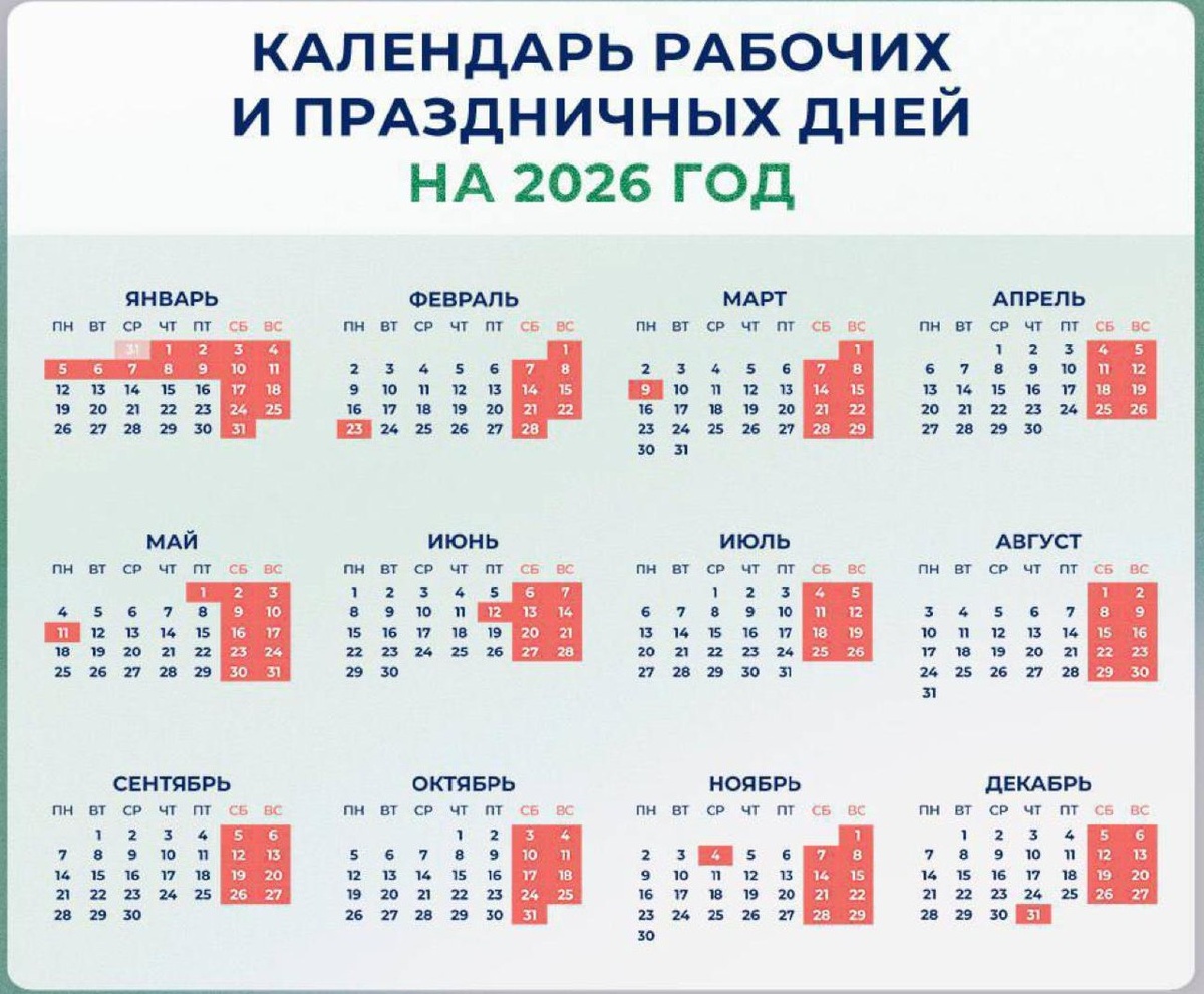 Столько продлятся новогодние каникулы в 2026 году: с 31 декабря по 11 января включительно. Минтруд уже всё зафиксировал в официальном производственном календаре — можете начинать планировать, как вы проведете эти две недели.