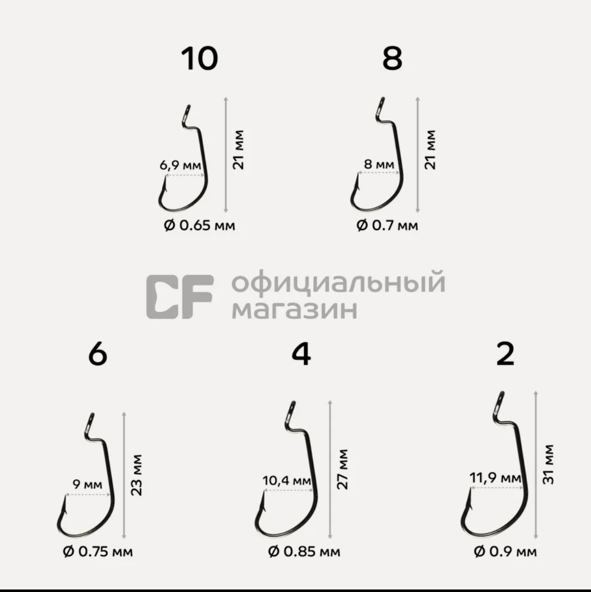 * **❗ Важно:** Размер крючка должен *соответствовать размеру приманки*! Слишком большой крючок испортит игру и сделает незацепляемость неэффективной. Слишком маленький – будет плохо засекать рыбу. **Для старта с "Волжанкой Стилет" 1-6гр берите #6 и #8!**
