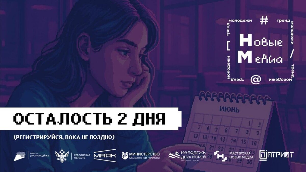 У тебя есть пара дней, чтобы зарегистрироваться на медиаслет «Новые медиа — тренд молодежи»! Это отличная возможность для всех, кто интересуется контентом, блогингом и видео. Если тебе от 18 до 35 лет, ты любишь снимать, рассказывать истории и продвигать свои идеи, не упусти шанс! Что тебя ждет: — Мастер-классы от профессионалов. — Практика по съемке, созданию интересных историй и продвижению. — Командная работа, новые знакомства и реальные проекты. — Тренды соцсетей, блогинг, видео и креатив. Слет соберет активных молодых людей из Херсонской области, чтобы вы могли развиваться, делиться идеями и запускать свои проекты. 📌 Не откладывай, регистрируйся: https://vk.cc/cNc7rF Время идет, потом будет поздно! Организаторы: — Министерство молодежной политики Херсонской области — Центр созидания «Маяк» — Молодёжный центр «Патриот» — «Мастерская новых медиа» #МолодежьДвухМорей #НовыеМедиа #МедиаСлёт #Творчество #Развитие #ХерсонскаяОбласть
