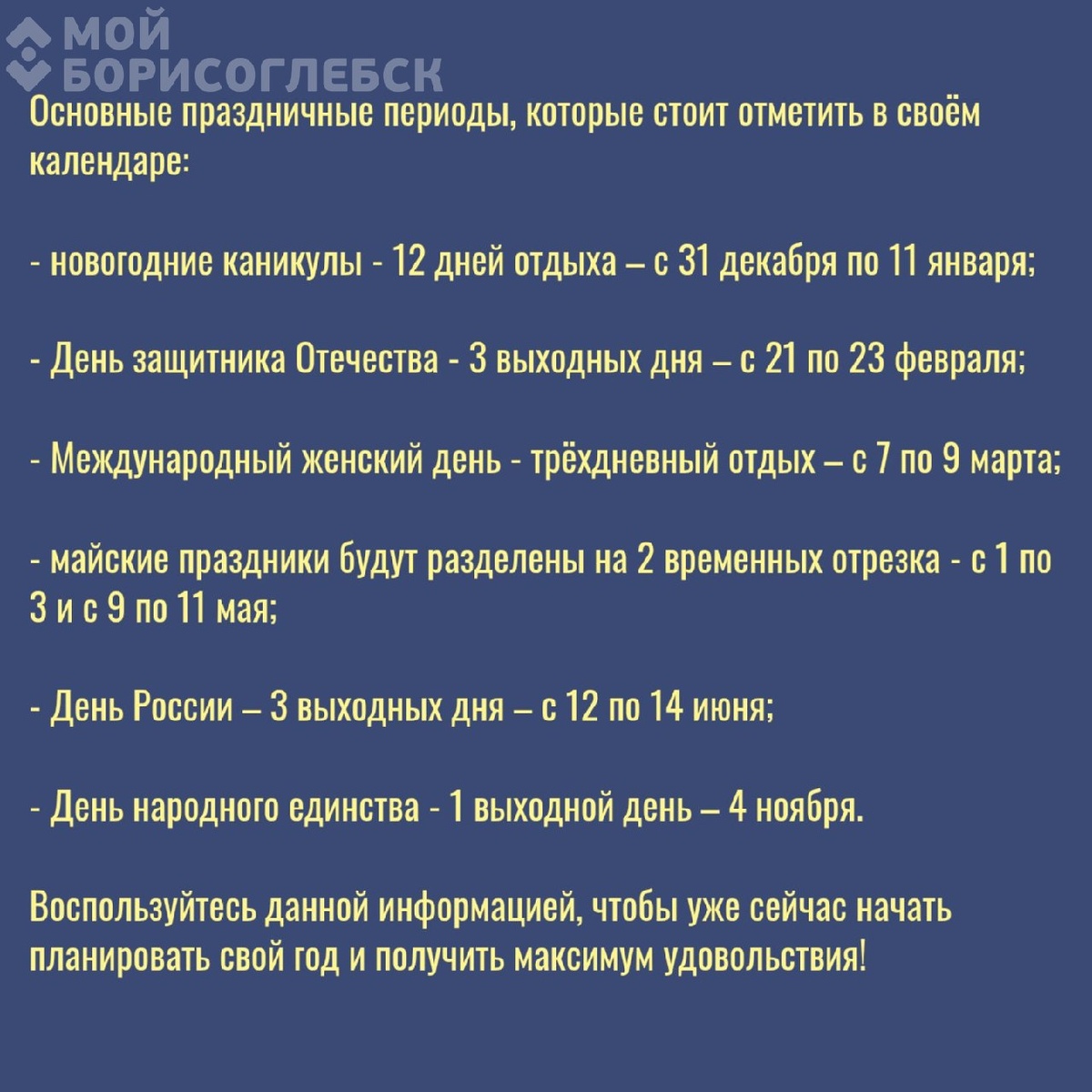 Планируем отдых: календарь праздничных дней в России на 2026 год Отличные новости для тех, кто любит планировать отдых заранее. В 2026 году россиян ждет несколько длительных выходных, которые позволят отправиться в путешествие или просто отдохнуть от рабочих будней.