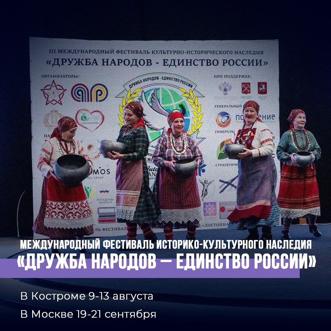 В этом году состоится Международный фестиваль историко-культурного наследия «Дружба народов – единство России», приуроченный к 80-летию Победы в Великой Отечественной войне. Событие призвано укрепить межнациональное единство, сохранить память о подвиге героев, вдохновлять молодежь гордиться историей своей страны. Фестиваль станет мостом между поколениями - традиции и таланты объединят усилия на укрепление мира и согласия. Участников ждут конкурсы вокала, хореографии, театрального искусства, дизайна, кулинарии и национальных костюмов, а также специальные номинации для детей-сирот, семей участников СВО, людей с ограниченными возможностями. Благодаря поддержке гуманитарного фонда Андрея Скоча «Поколение» участие для льготных категорий будет бесплатным. Подайте заявку на сайте aisfestival.com, чтобы стать частью масштабного движения за мир, дружбу и единство!