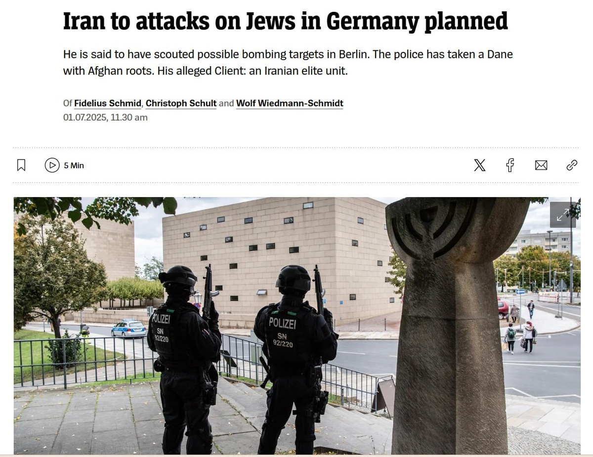 Berlin's top mag Der Spiegel claims Iran planned 'attacks on Jews' in Germany