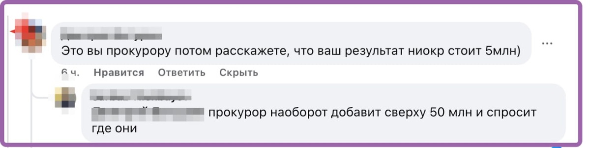 Продолжаю собирать коллекцию чепухи на мой пост про грант 5 млн. для ИТ компаний от ФСИ (недавно анонсировали запуск). Вот тут на картинке пишут про прокурора, а ранее (не стал уже делать скрин) написали про откаты... Мне сложно даже это комментировать и очень жаль, что другие люди читают и делают неверные выводы. Ребята, нет никаких откатов, прокуроров, судов, отжимов, зажимов, обжимов, майоров, братков и т.п. Вам дают деньги, вы работаете... Правда у нас было смешно - когда пришла сумма гранта от ФСИ (там отправитель Казначейство РФ), то МодульБанк на всякий случай заблокировал нам счета, т.к. девочка операционист испугалась и перестраховалась :)... Решилось за 1 час интенсивной переписки с банком и не повторялось. Вот и вся проблема, с которой мы столкнулись за 2 года. Ужасно, да? :) Русский ИТ бизнес