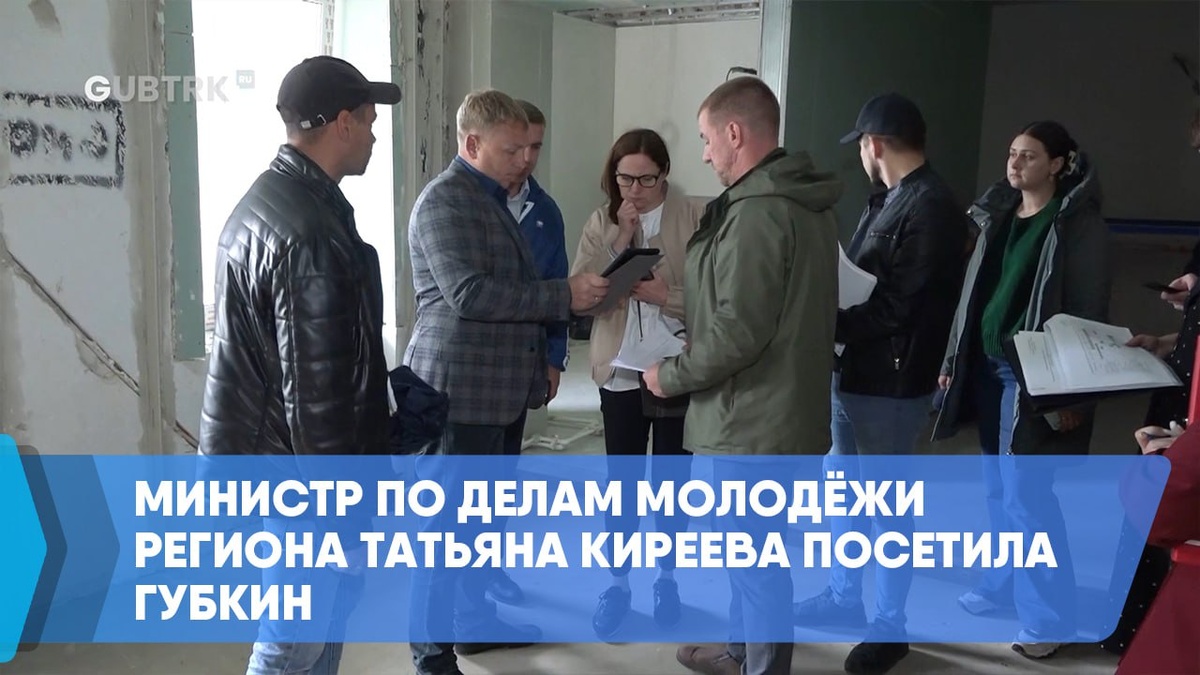 Министр по делам молодёжи региона Татьяна Киреева посетила Губкин Губкин с рабочим визитом посетила заместитель губернатора области — министр по делам молодёжи Татьяна Киреева. Совместно с главой окружной администрации она проинспектировала ход капитального ремонта бывшего кинотеатра «Россия»
