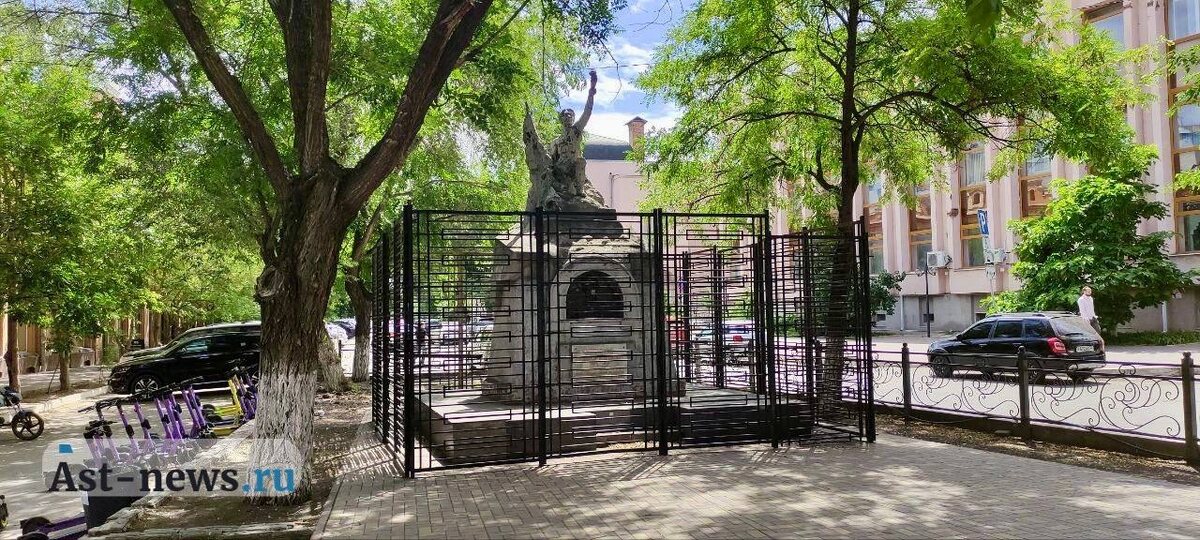 В центре Астрахани оградили могилу-памятник