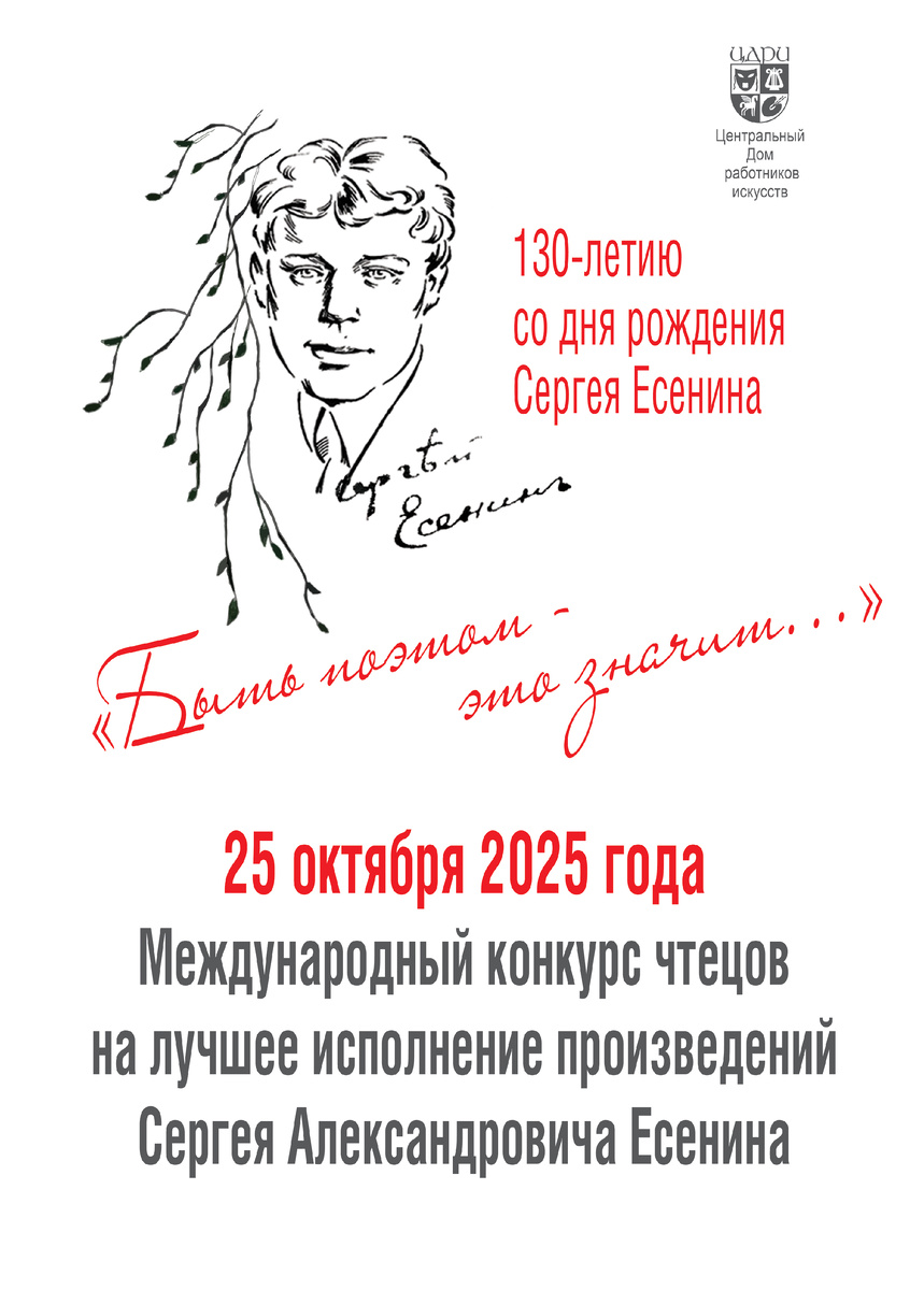 Международный конкурс чтецов на лучшее исполнение произведений С.А. Есенина В 2025 году отмечается 130 лет со Дня рождения русского и советского поэта — Сергея Александровича Есенина, писателя Серебряного века, представителя новокрестьянской поэзии и лирики, а в более позднем периоде творчества — имажинизма. В разные периоды творчества в его произведениях находили отражения социал-демократические идеи, образы Родины, деревни и природы, любви и поиска счастья. Конкурс проводится в очной форме. В рамках Конкурса участникам предлагается исполнить вслух на русском языке стихотворение, отрывок из выбранного произведения или сцены из пьес Сергея Александровича Есенина. Участниками конкурса могут быть исполнители: дети и подростки от 10 до 16 лет, профессиональные и непрофессиональные актёры и чтецы от 17 лет. Оценивать выступления участников конкурса будет компетентное жюри, в состав которого войдут ведущие деятели иску