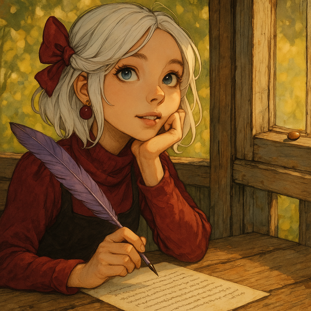 Лада сидела на веранде за стареньким деревянным столом и аккуратно выводила буквы пером с лавандовой ручной. Чернила пахли черникой, бумага — как будто чуть мятой, а воздух вокруг был совсем летним: тёплым, светлым, с лёгким шорохом листвы. Солнечные лучи пробивались сквозь кроны деревьев и прыгали по её плечам — как будто проверяли, действительно ли она пишет волшебство. А Лада писала. "... она оставляет вишнёвые косточки на подоконниках тех, кто втайне мечтает о другом мире. Она идёт по отблескам света и знает, где находятся двери, которых не видно днём..." И тут Лада замерла. Последняя строчка... она её не писала. Там, прямо под её почерком, появился чужой — тонкий, будто выведенный серебром: "Я оставила косточку на твоём окне. Но ты написала обо мне раньше, чем я пришла. Значит, мы знакомы. Или скоро будем." Лада резко повернулась к окну. На раме — действительно лежала вишнёвая косточка. Чистая. Словно только что из пальцев. А за окном... кто-то прошёл по солнечному лучу. Не шутка