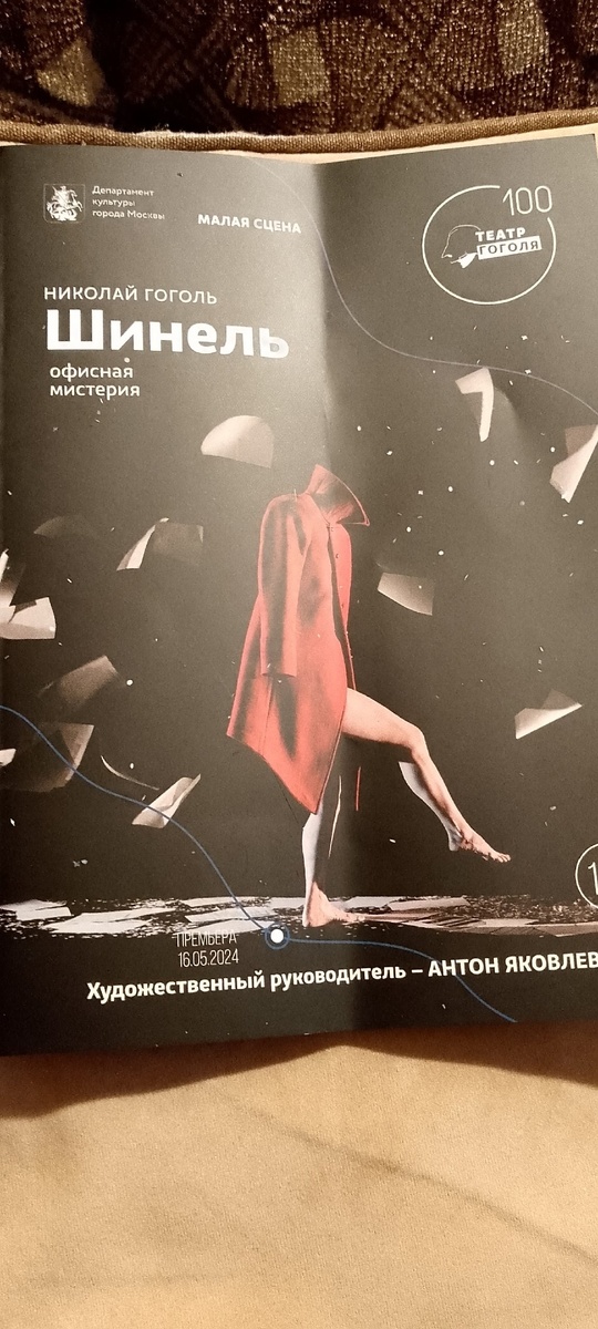 О спектакле «Шинель» Московского драматического театра имени Гоголя. Премьера 16 мая 2024 Он совершенно приучился голодать по вечерам; но зато он питался духовно, нося в мыслях своих вечную идею будущей шинели. Н. В. Гоголь. «Шинель» - Слушай, Базин, у тебя есть мечта?