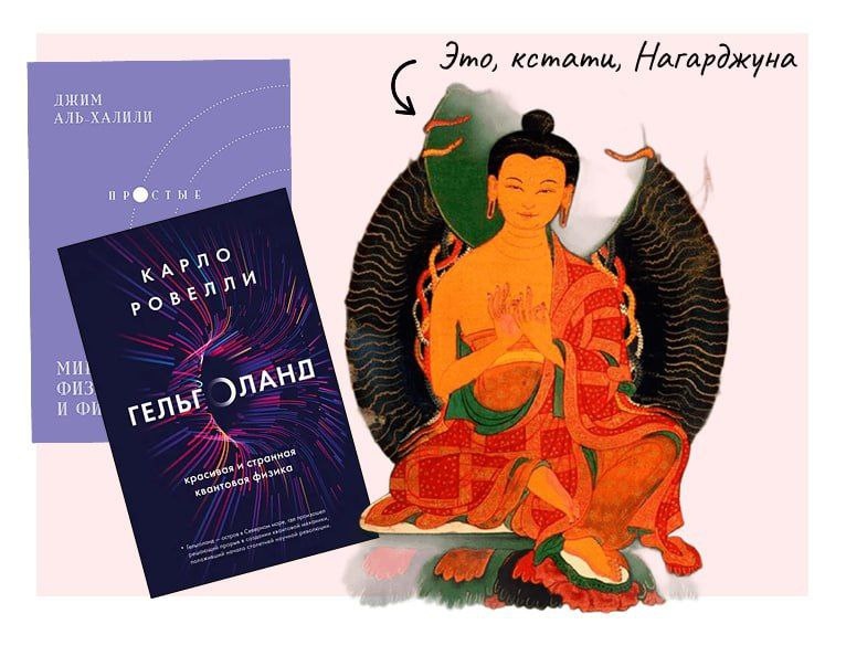 Расскажу вам про философию индийского мыслителя, настоятеля индийского монастыря, жившего почти 2 тысячи лет назад. Прочитала в «Гельголанд». Нащупала в этих словах опоры для себя. Не уверена, что древний мыслитель именно так хотел, чтобы были поняты его идеи (а, может, и так😏), но я взяла на себя смелость дешифровать их и сделать вывод. «Главный тезис Нагарджуны заключается в том, что не существует вещей, которые имеют существование сами по себе, независимо от чего-либо ещё. Эта мысль очевидным образом перекликается с квантовой механикой. Конечно, Нагарджуна не знал и не мог знать ничего о квантах, но дело не в этом. [...] Предлагаемый Нагарджуной взгляд на мир может немного облегчить нам осмысление квантового мира. Если ничто не существует само по себе, то все существует только в зависимости от чего-либо другого, в связи с чем-то другим. Для описания отсутствия независимого существования Нагарджуна использует термин «пустотность» («шуньята»): вещи «пусты» в том смысле, что у них