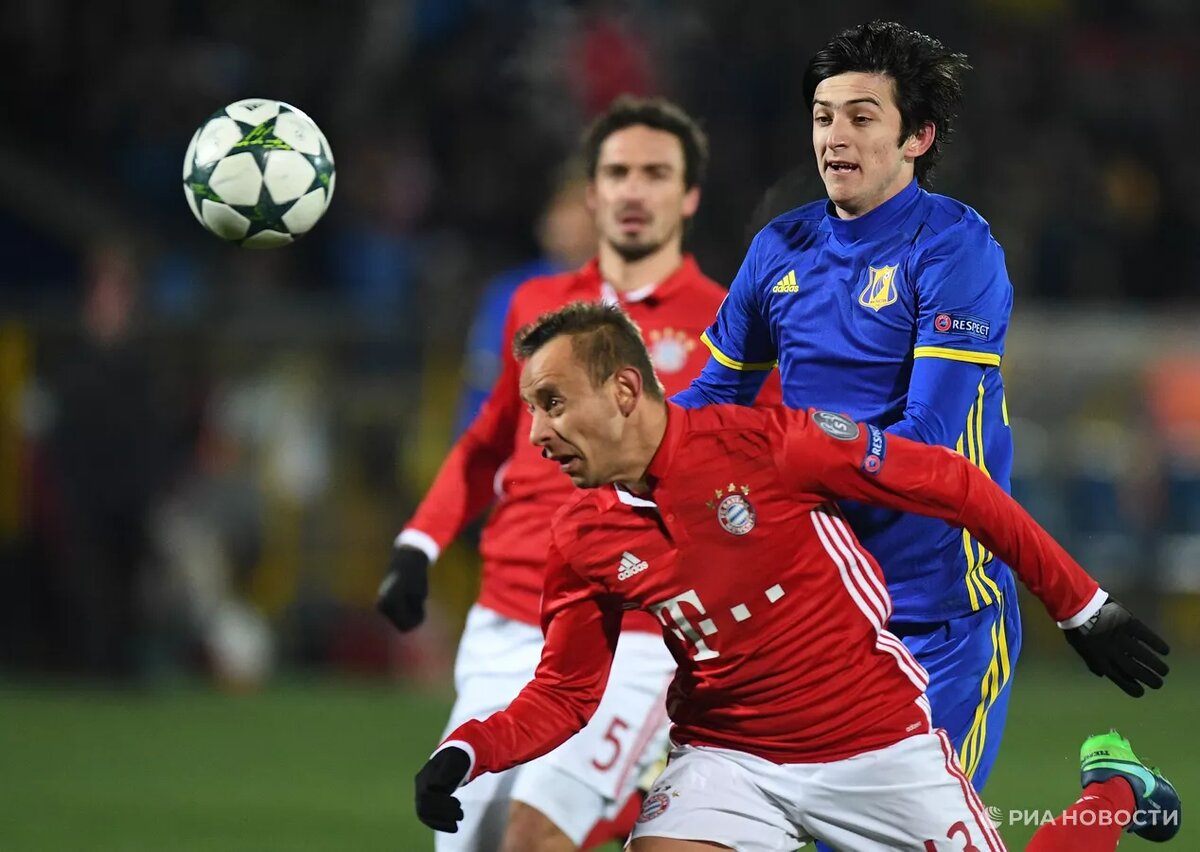 Из архива РИА Новости, 23 ноября 2016 Матч пятого тура группового этапа Лиги чемпионов между "Ростовом" и "Баварией" закончился волевой победой ростовчан — 3:2. Счет во встрече, состоявшейся в Ростове-на-Дону, открыли мюнхенцы усилиями Дугласа Косты. Ростовчане ответили голами Сердара Азмуна и Дмитрия Полоза с пенальти. В начале второго тайма "Бавария" вновь отличилась, мяч на свой счет записал Хуан Бернат. На 67-й минуте победную точку в игре поставил Кристиан Нобоа точным ударом со штрафного. Эта победа стала первой для "Ростова" на групповом этапе Лиги чемпионов. После пяти туров ростовские футболисты имеют в активе четыре очка, идут на третьем месте в группе и претендуют на попадание в плей-офф Лиги Европы. Болельщики уже окрестили матч с "Баварией" историческим.