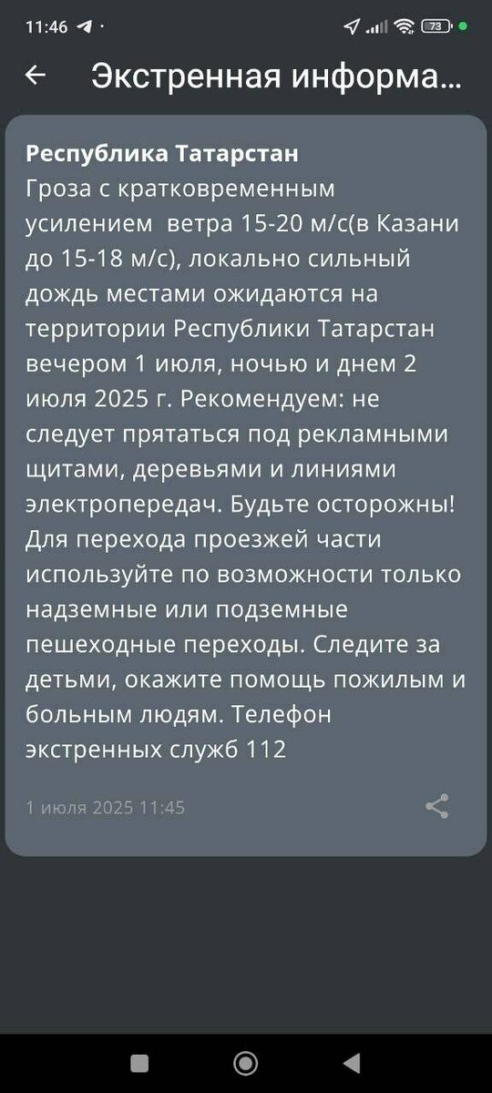 В Татарстане в ближайшие сутки ожидаются сильный дождь, гроза, ветер порывами до 15-20 метров в секунду. В МЧС напомнили, что во время грозы необходимо ограничить выход из зданий, находиться в помещениях. Важно не оставлять без присмотра детей. На улице следует держаться подальше от рекламных щитов, вывесок, дорожных знаков, линий электропередач. Все окна домов нужно плотно закрыть, убрать с балконов и лоджий предметы, которые могут выпасть наружу. Необходимо держаться как можно дальше от окон в жилом или рабочем помещении.