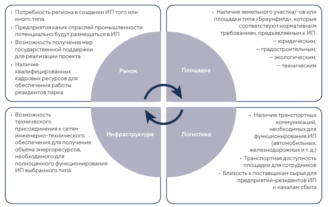 В обобщенном виде подход к выбору земельного участка для строительства индустриального парка включает несколько этапов: