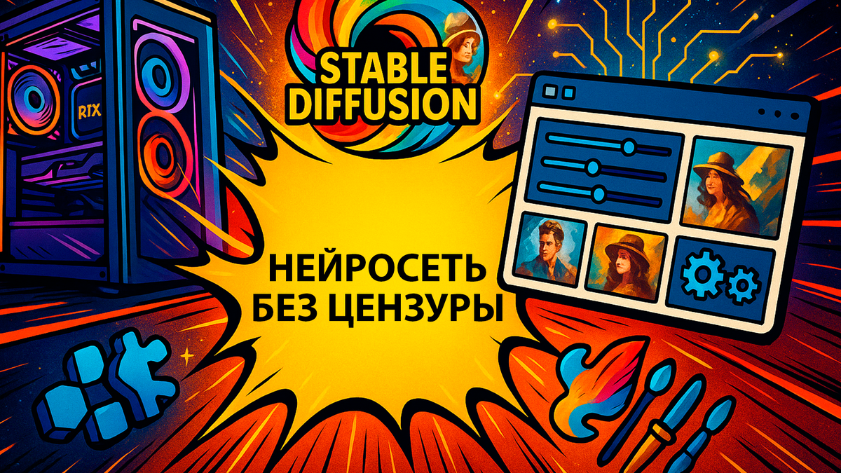 Хочу начать с одной особенно классной штуки — Stable Diffusion. Это не какой-то облачный сервис, где тебе сначала нужно зарегистрироваться, подписаться, а потом ещё надеяться, что промт пройдёт цензуру. Нет. Здесь всё по-другому: ты ставишь систему у себя — на компьютере или сервере — и сам решаешь, как она будет работать.