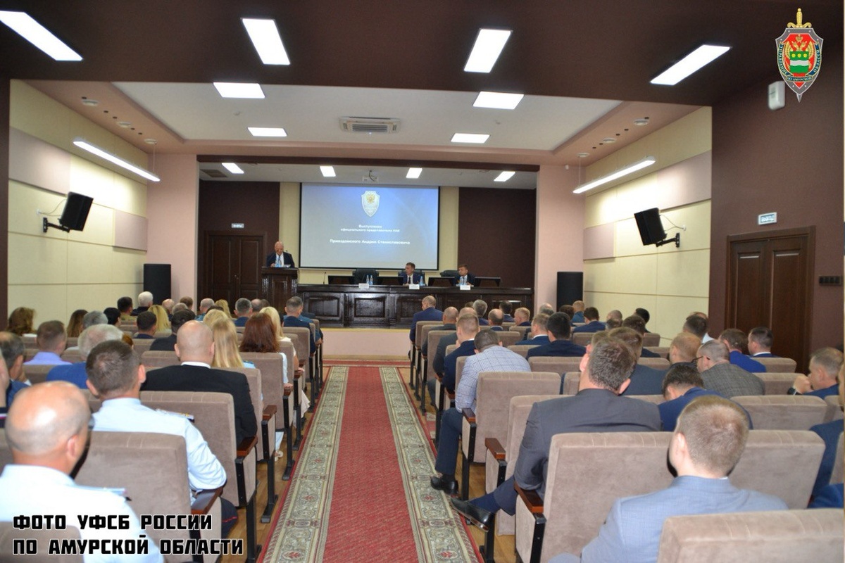Международные террористические организации и спецслужбы некоторых государств активизировали деятельность по вовлечению людей в террористическую деятельность. В Приамурье обсудили организацию информирования населения о мерах противодействию терроризму в современной обстановке. Совещание провел руководитель оперативного штаба в регионе - начальник управления ФСБ России по Амурской области Андрей Курдуков. В мероприятии приняли участие официальный представитель Национального антитеррористического комитета (НАК) Андрей Пржездомский, зампред правительства Амурской области Алексей Севостьянов, члены антитеррористической комиссии и оперативного штаба, сотрудники силовых ведомств, а также руководители пресс-служб органов государственной власти. Открывая межведомственное совещание, начальник управления ФСБ России по Амурской области Андрей Курдуков отметил, что борьба с терроризмом является ключевым направлением деятельности органов безопасности в регионе. На фоне проведения специальной военной