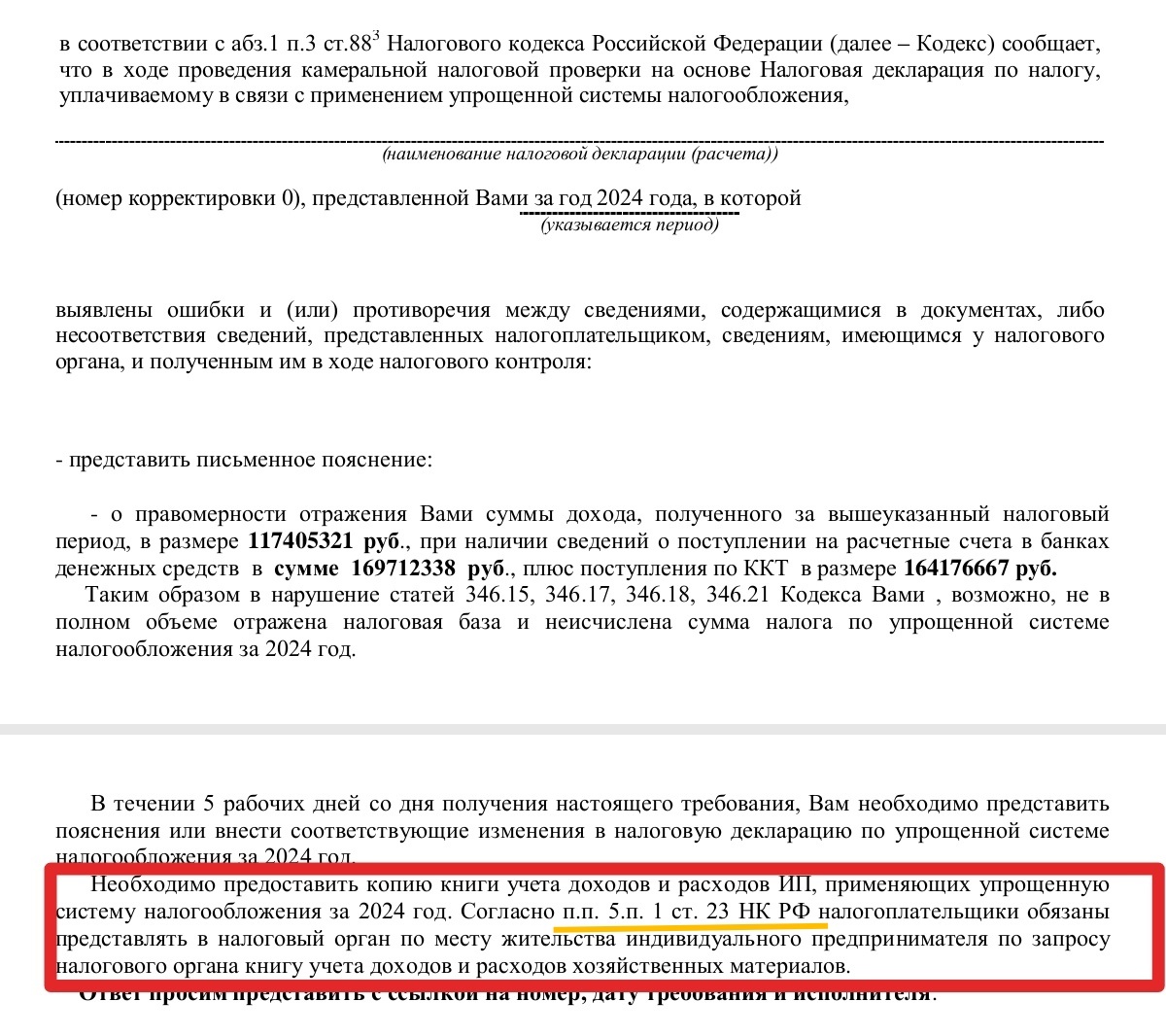 Здравствуйте 👋 Давно не писала Вам)) Сейчас очень интересное для меня пришло требование по КУДИР. В начале все, как обычно: по ККТ столько-то, на р/с столько-то, а почему разница, патент почему применяли и т.д)) Все любимые статьи НК: 88, 93. Но вот в конце: требуем предоставить КУДИР, согласно ст. 23, ст.1 пп. 5. И вот ничего не сделаешь же, придётся предоставить. Поумнели у нас в регионе инспекторы))) - написала нам очень опытный и профессиональный главный бухгалтер, которая щёлкает запросы налоговиков как орешки. Но тут даже она решила, что проверяющие поумнели, и нашли новое основание для запроса КУДиР. А раз так, то думаем, еще очень многие специалисты обязательно попадутся на этот трюк, поэтому спешим о нём рассказать. Так вот, не волнуйтесь, никто в налоговой не поумнел, и даже не похитрел😊 Приписка с требованием предоставить КУДиР на основании пп. 5 п. 1 ст. 23 НК РФ - не нова, ее налоговики писали и раньше. Главный фокус тут в том, что когда открываешь пп. 5 п. 1 ст. 2