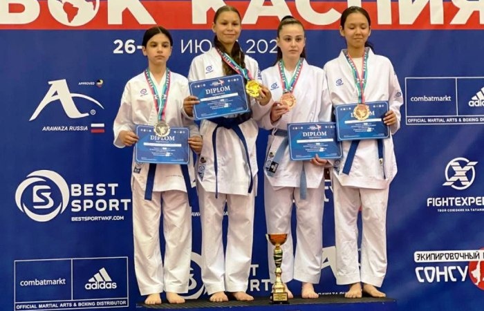 И заняли четвертое место в общем зачете среди 26 команд. В Каспийске прошли международные и всероссийские соревнования по каратэ WKF «Кубок Каспия». В них приняли участие 450 спортсменов из 23 регионов России, а также Азербайджана, Армении и Казахстана, которые определяли лучших в пяти возрастных категориях. Астраханская сборная была представлена 17 каратистами, и 10 из них удостоились наград. Наилучший результат на татами показали три девушки, завоевавшие золотые медали: Карина Есимова (возрастная категория – старше 18 лет, весовая категория - до 50 кг), Вероника Мошева (12-13 лет, до 42 кг), Екатерина Соломенникова (12-13 лет, свыше 52 кг). Еще 7 астраханцев стали бронзовыми призерами: Максим Илюхин (14-15 лет, до 52 кг + еще одна бронза в ката), Ростислав Лендов (старше 18 лет, 75 кг), Магомед Магомедов (14-15 лет, до 57 кг), Татьяна Черногорцева (14-15 лет, до 54 кг), Амелия Гайнетдинова (12-13 лет, до 52 кг), Дарья Карпова (12-13 лет, до 47 кг), Станислав Лигай (14-15 лет, в ката