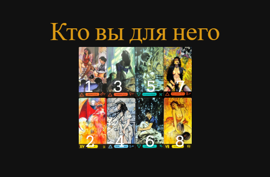 Расклад поможет понять: кто вы для него, какую роль занимаете в его жизни, что нравится, что не хватает, что отталкивает, какие у него планы на вас и какие перспективы ваших отношений. Приветствие