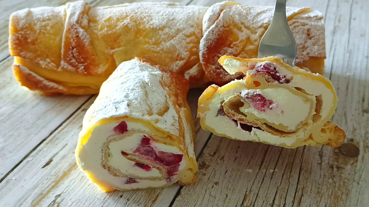 Рулет "Финский" с творожным кремом и ягодами (готовит мама).