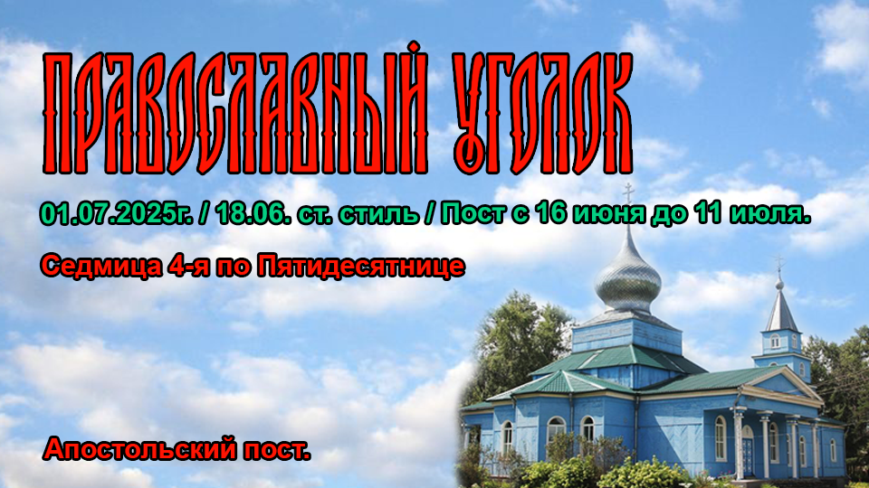 Седмица 4-я по Пятидесятнице. Апостольский пост. День памяти мучеников Леонтия, Ипатия и Феодула. День памяти Преподобного Лео́нтия Печерского, канонарха.