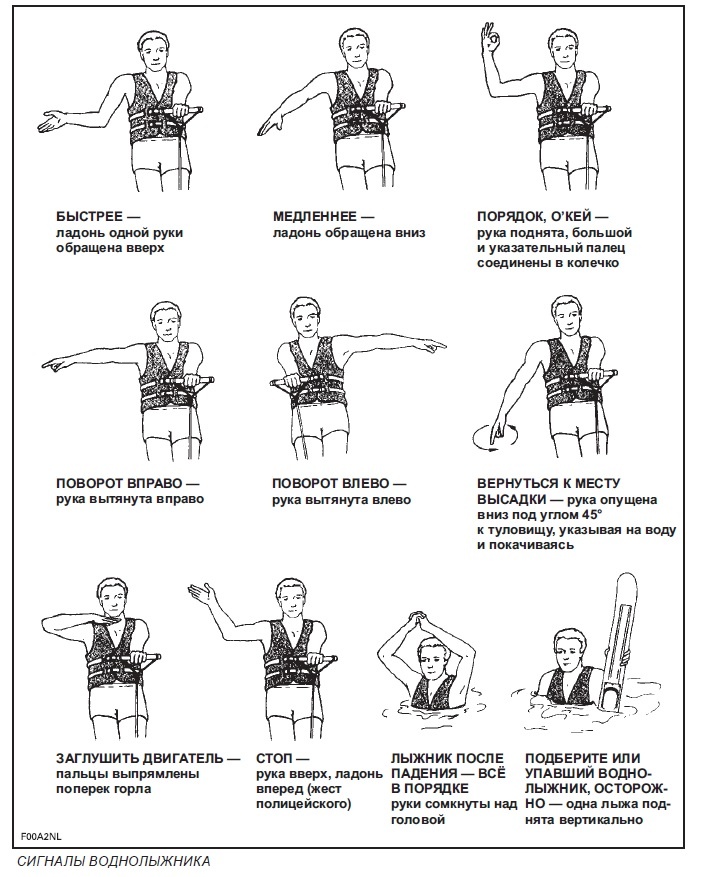 В Паспорте на катер Сеа Доо нашел следующую информацию - Сигналы воднолыжника: А ныряльщик, что бы обезопасить себя от наезда катером должен соблюдать следующие правила - нырять со специальным поплавком: На просторах интернета называется - надувной буй для дайвинга: так что не только водитель катера должен соблюдать меры предосторожности при движении, но и ныряльщики!... Но что-то я ни одного такого буя в реальности не видел.