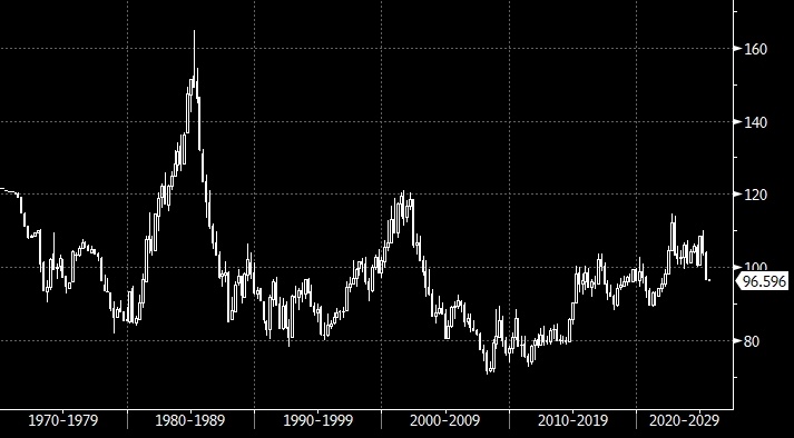График индекса доллара интервалами в 1 неделю