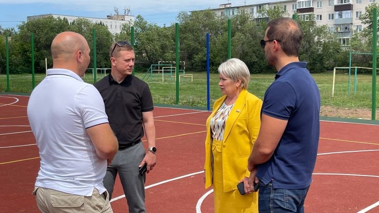 Ольга Березнева оценила ход работ на спортивной площадке школы №64
